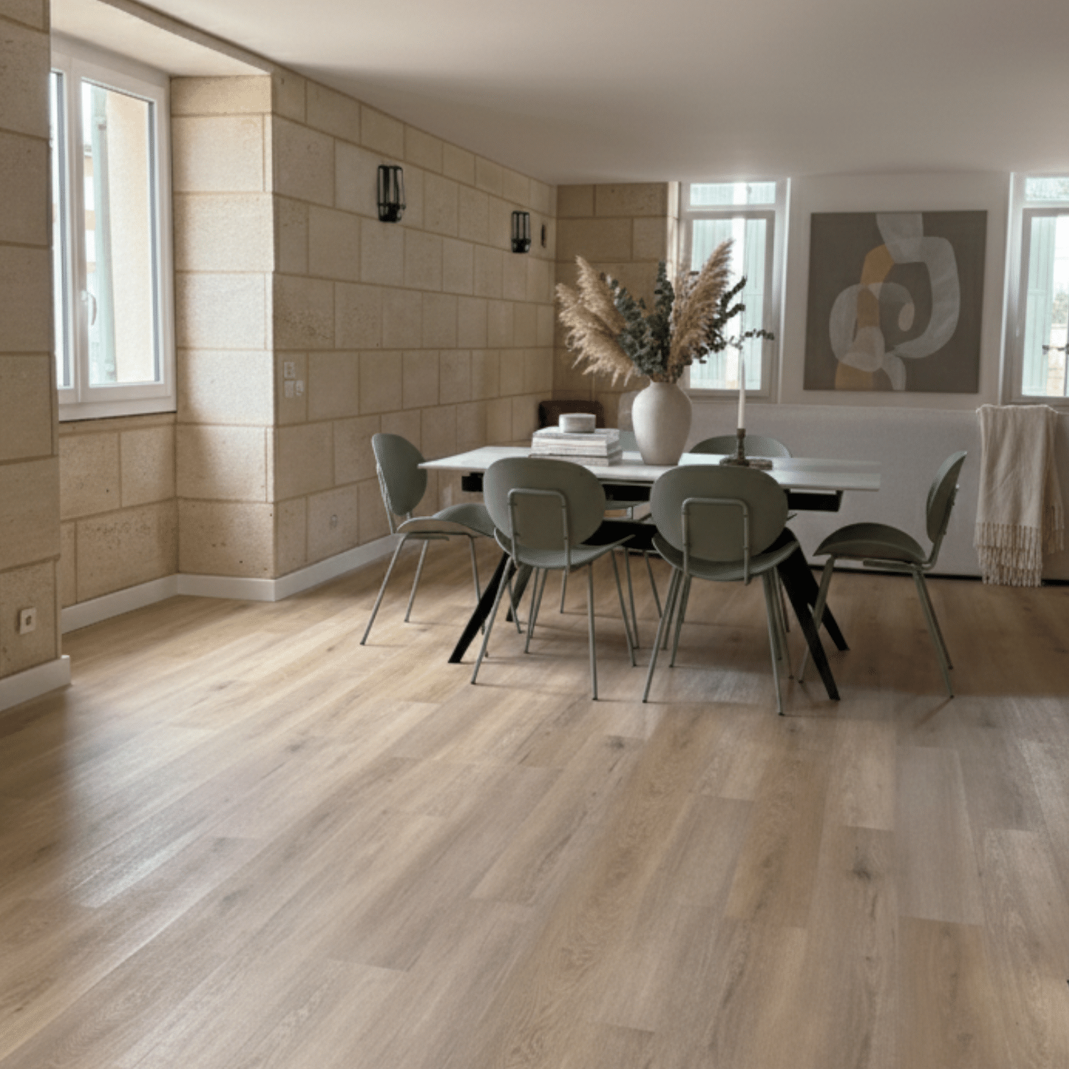 • Stabilité et longévité : Grâce à leur cœur rigide, ces sols ne craignent pas les variations de température, évitant ainsi le gaspillage lié au remplacement précoce de lames déformées.