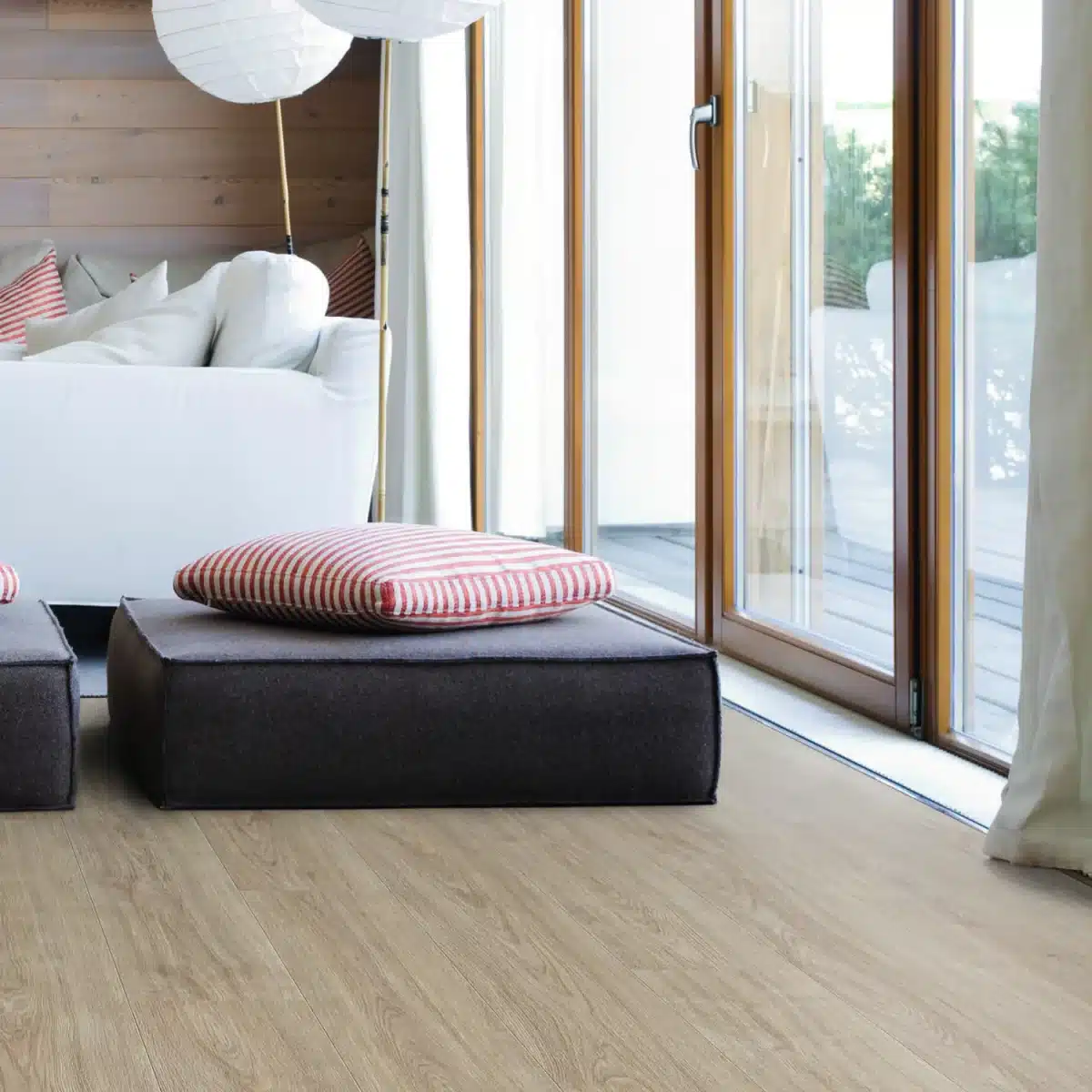 Faites le choix d’un sol lumineux, robuste et hydrofuge : le Stratifié Chêne Eleganza Blanc Crème XL AQUA est la fondation parfaite pour une maison moderne et durable.